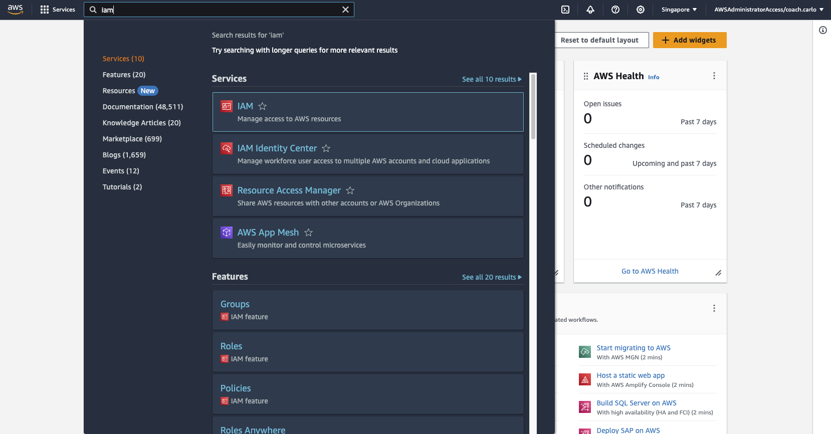 1-a From AWS Management Console, search for IAM.