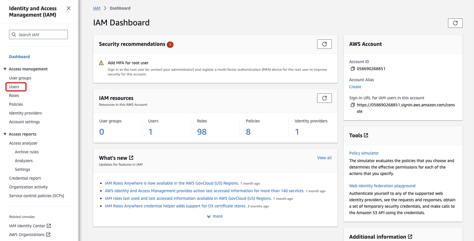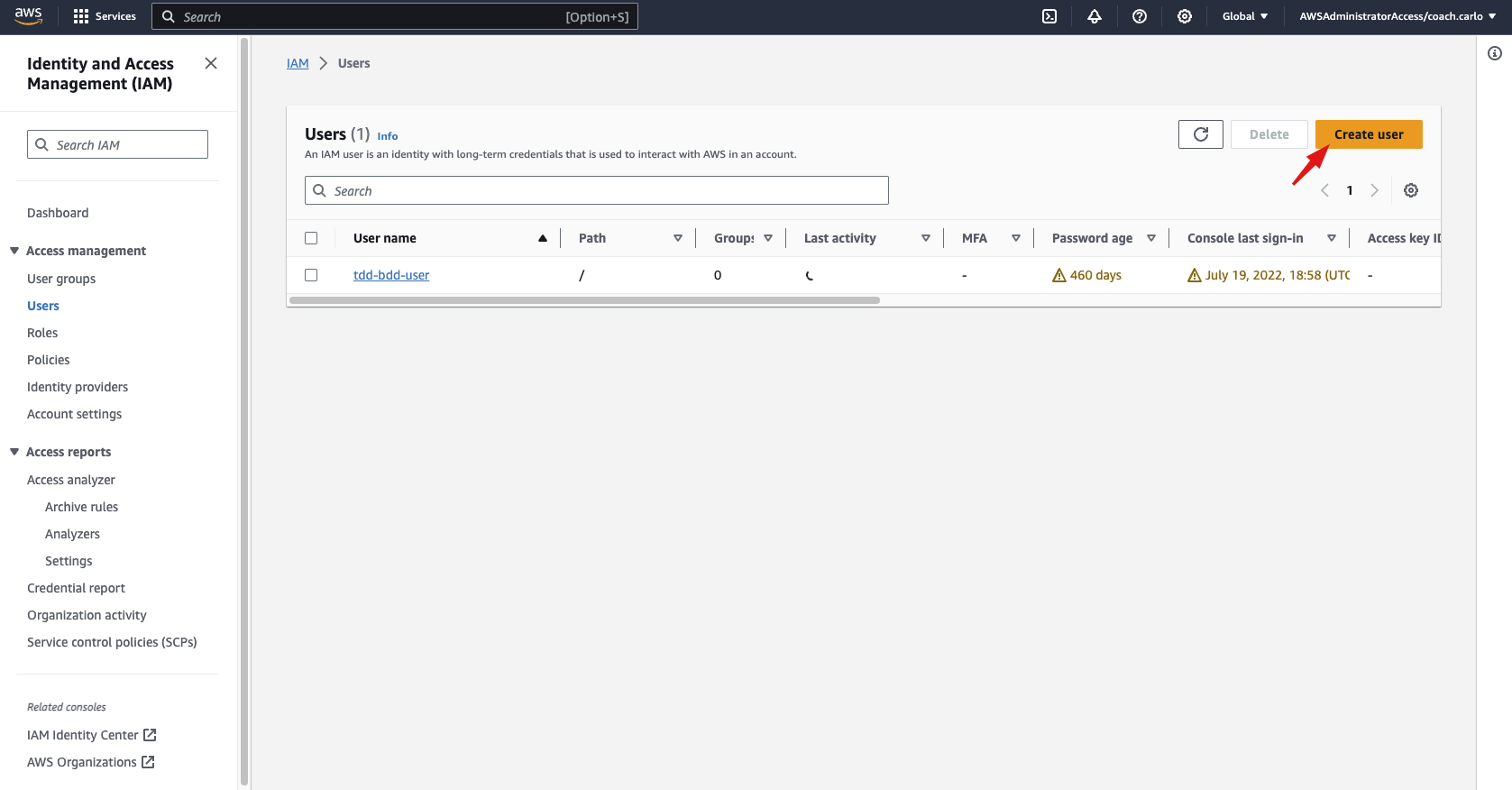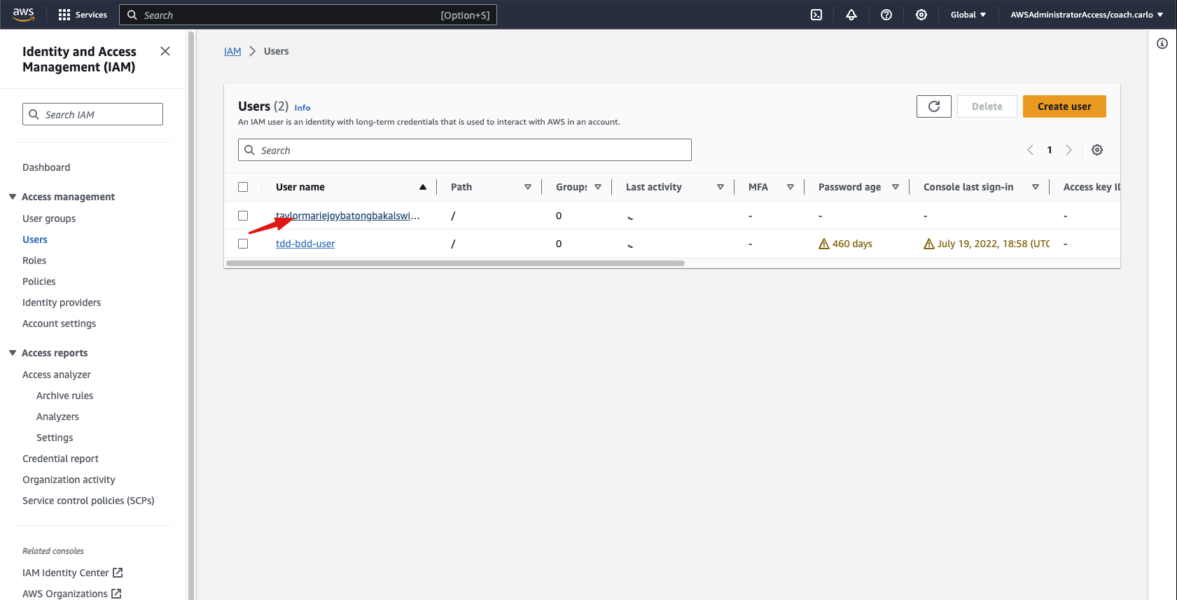 1-b On the access management tab, choose Users.