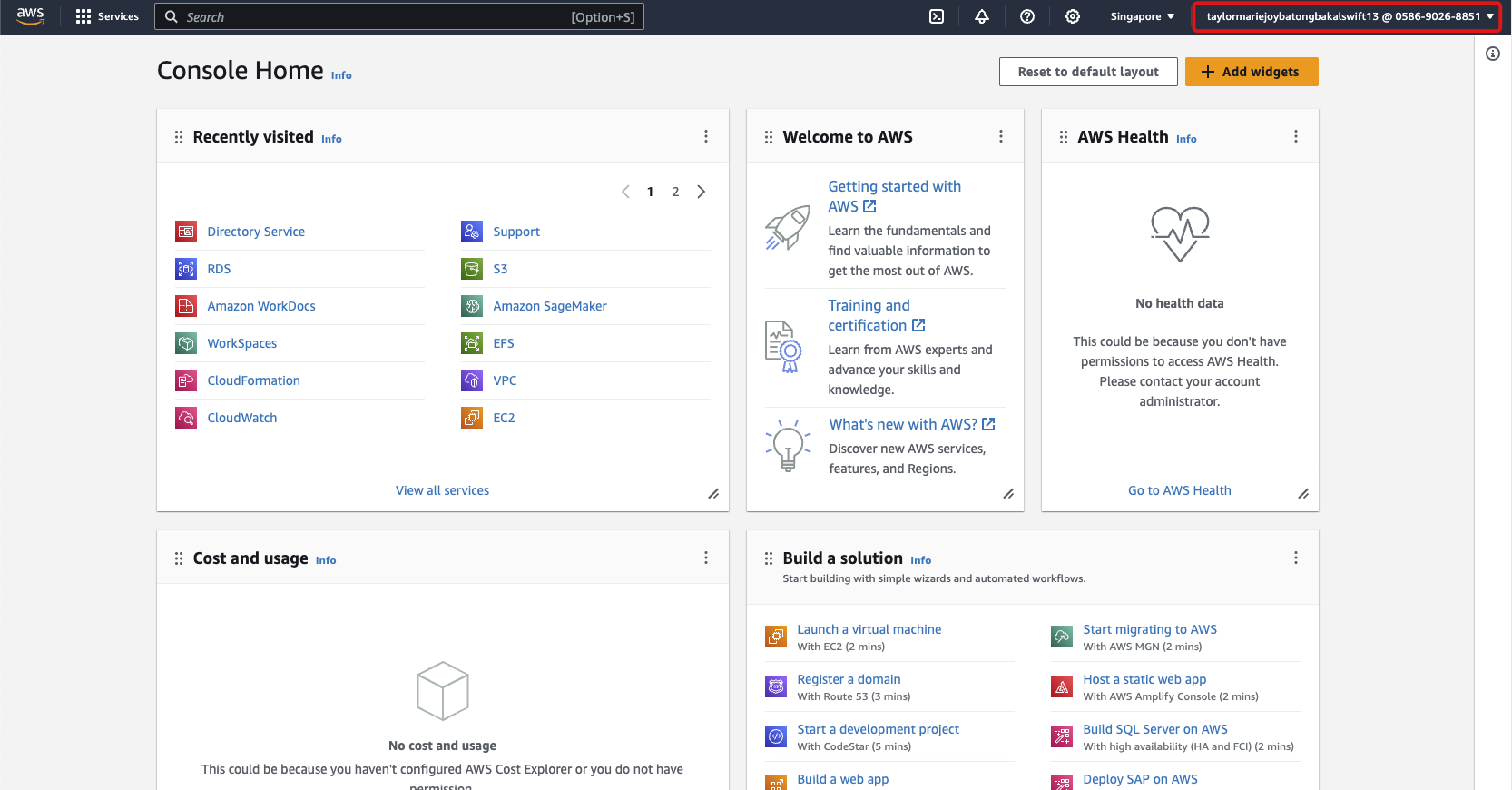 3-b Once logged in, you can notice that the username is displayed on the top right of your AWS Management Console. This proves that we are currently signed-in as the IAM User you created.