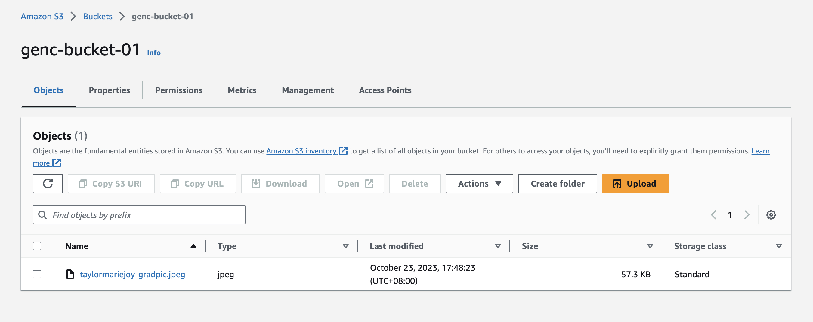 3-d Look for the genc-bucket-01 and delete the file inside.